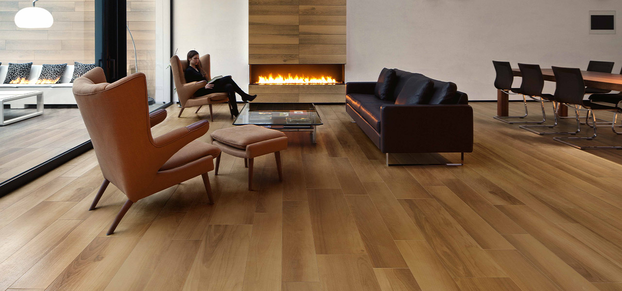 天然木の節目や木目をそのまま再現した木目調タイル。