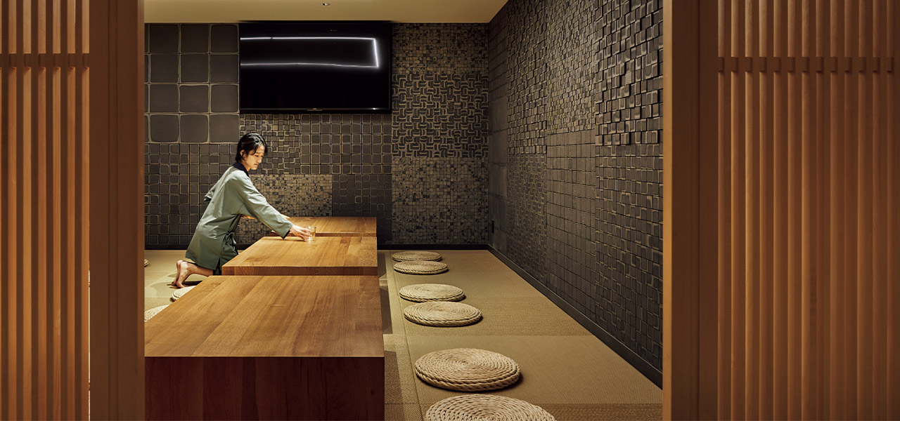美しい北欧デザインのBOLONと世界が認める日本の床材の畳を融合させました。 このコラボレーションがデザイン性と優れた耐久性、ソフトな快適性のすべてを満たす新しい床材を実現しました。 畳の上を素足で歩いたり、ごろんと寝ころぶ気持ちよさは格別なくつろぎを与えてくれます。 住宅のリビングや耐久性を求められる旅館、ホテルにも最適な素材として注目を集めています。