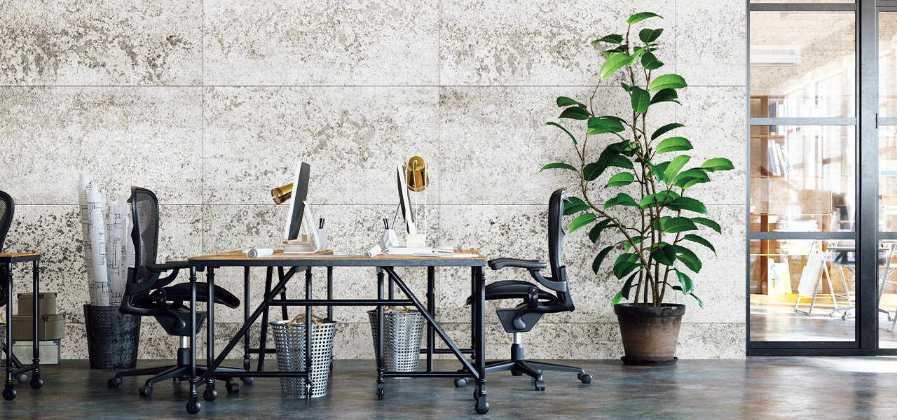 本物のセメントを独自技術でプレス成形した内壁用タイル。薄くて軽いため施工性に優れ、既存壁にそのまま貼ることもできます。不燃認定を取得しているためキッチン壁にも使用でき、用途は多岐に渡ります。セメントのリアルな風合いを楽しみたい方におすすめです。