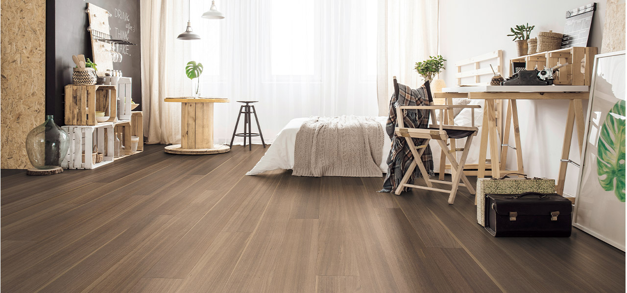 芯材には、高密度で耐久性に優れるブラジル原産のへベアを使用。これにより、丈夫で安定したフローリングができあがります。