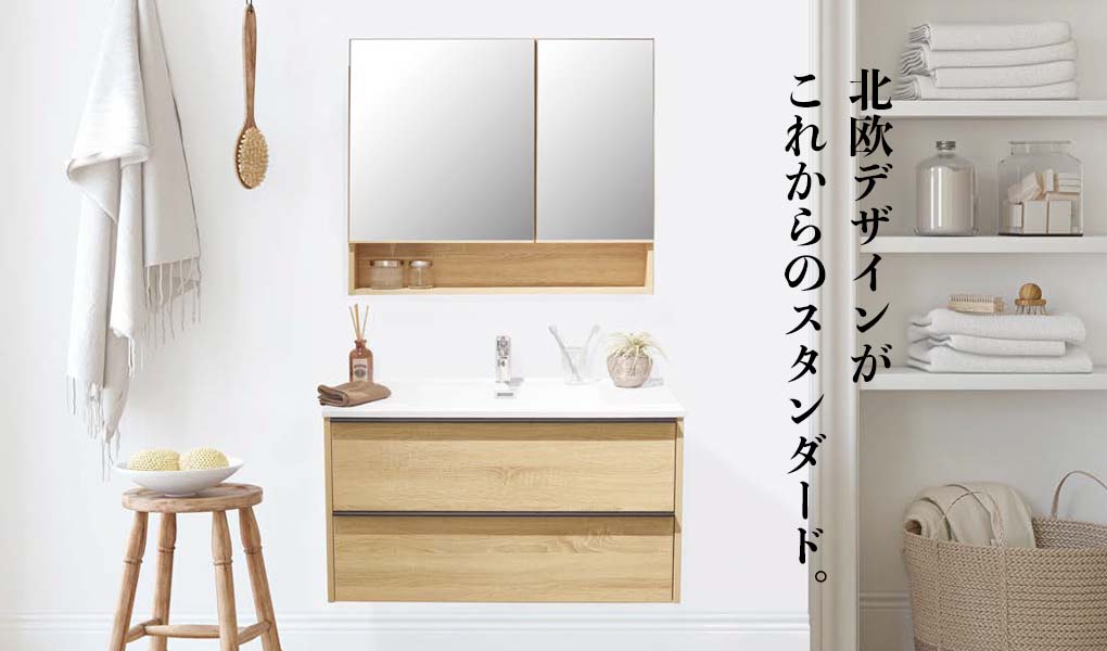 水まわりをこだわりたいという方にピッタリの洗面家具です。色合いや質感をとことん追求した木目、メラミン製面材の素材感と黒フレームをマッチングさせたモダンテイストが特徴です。水まわりスペースに存在感を主張しつつも、周りの床材や家具に合わせやすい4色を取り揃えております。