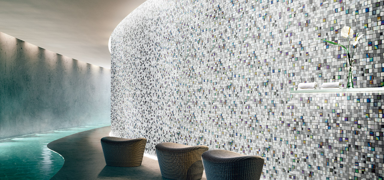 独特の光沢感で見る角度によって表情を変えるガラスモザイク。 カラフルなものからシックなものまで豊富な品揃えでデザインの幅が無限に広がります。 施工も簡単なので、リフォームやDIYにもおすすめです。