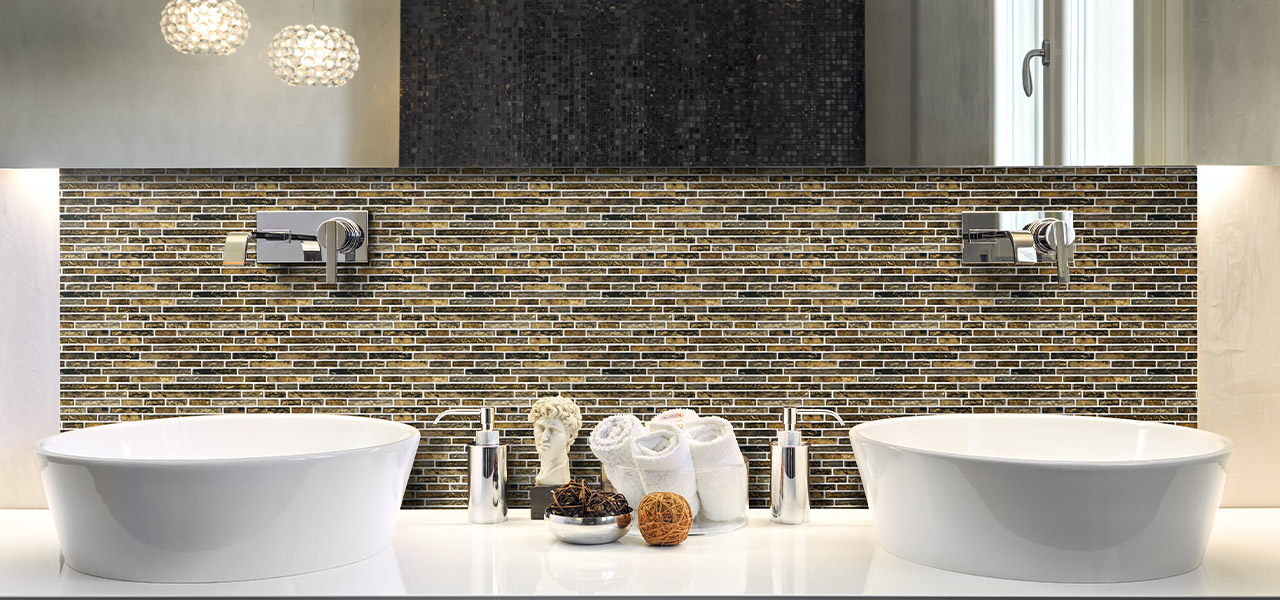 天然石、ガラス、人造石など異なる素材をミックスさせることによる独特の立体感が特徴です。洗面所やキッチン、玄関周りなど小スペースにアクセントとしても使用でき、空間に彩りを加えます。