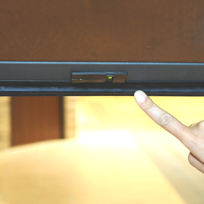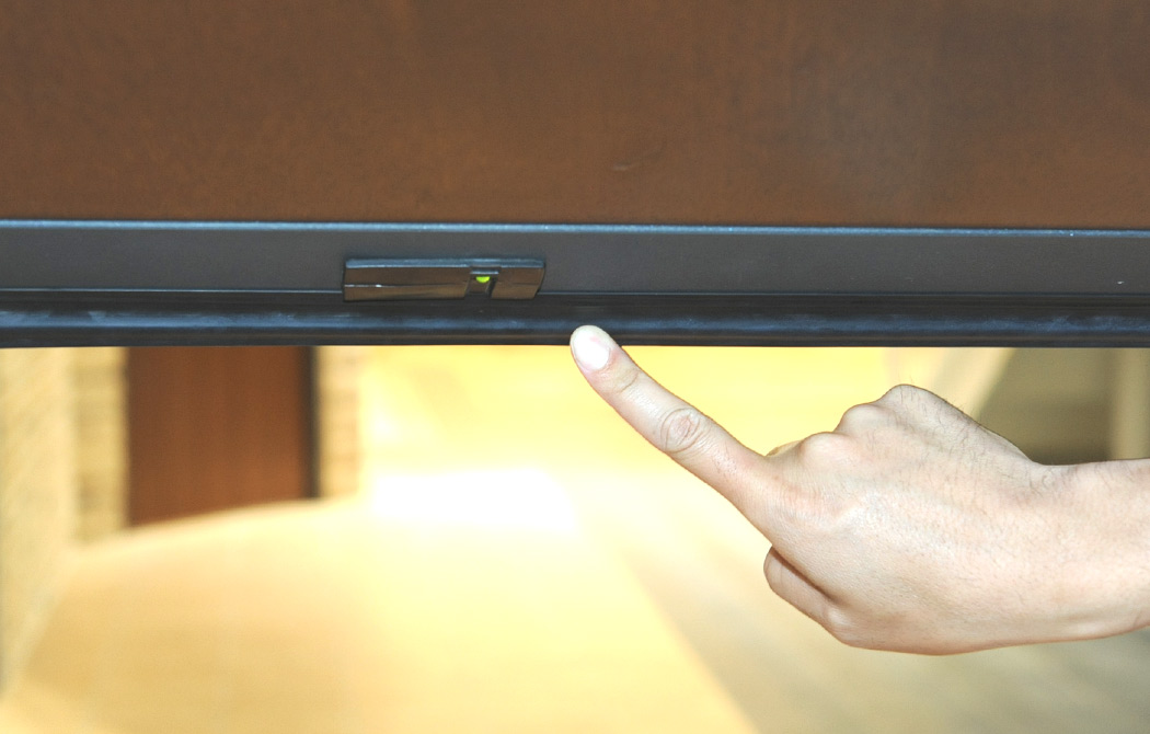 Model VIPは一般的な電動シャッターと比べ2倍以上のスピードで開閉します。リモートコントローラーを標準で装備し、車内でも車外でもボタン一つで開閉。
