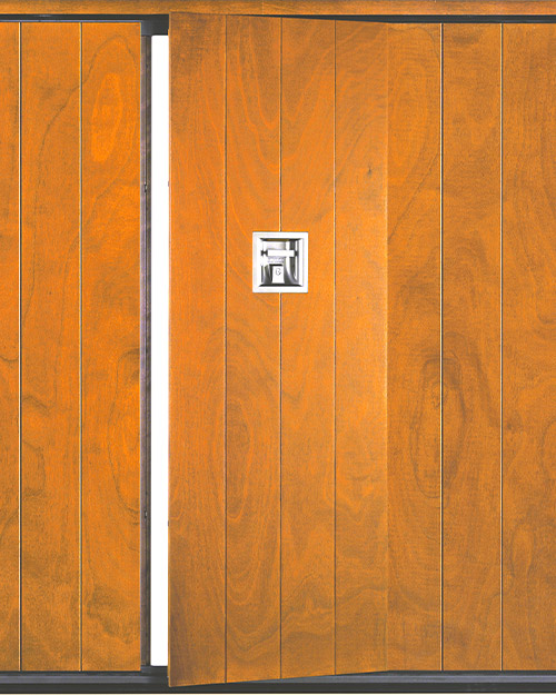 イタリアの木製ガレージドアならではの個性あるデザイン性と機能性を両立させました。 「Model VIP」シリーズでは、ガレージドア中央に人が出入りできるセンタードアが付いています。 ガレージドアを閉めたままでもセンタードアから自由に出入りができる大人の秘密基地のような構造。耐久性ある希少なアフリカ産オクメ材を使用オクメは品のある木目の流れが美しく、耐水性にも優れているのでおり、ヴェネチアの水上タクシーでも使用されています。