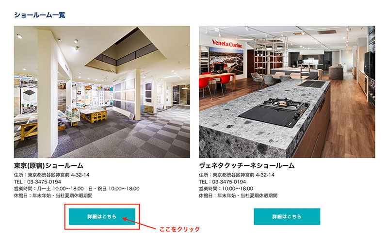 1.ショールームのご案内からご希望のショールームをクリックしてください。