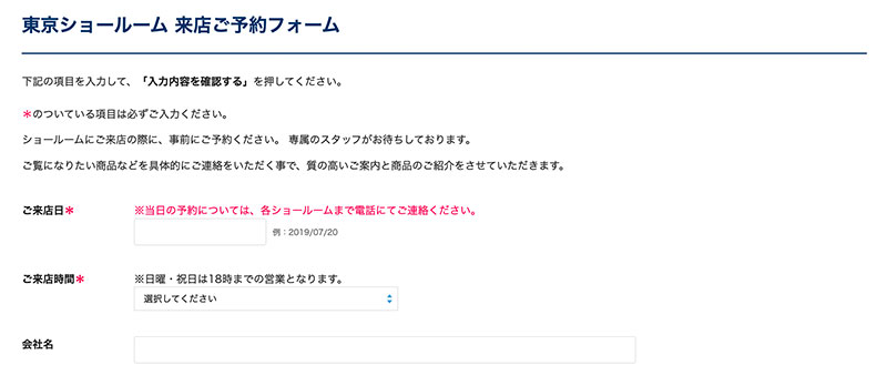ご希望のショールームのご予約フォームから承っております。