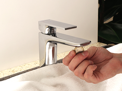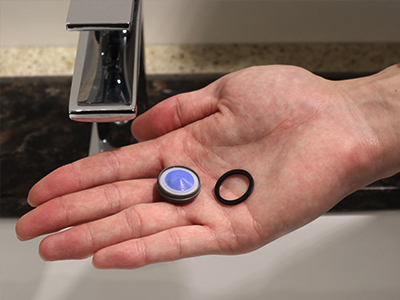 エアレーターを取り外し、交換します。ゴムを取り付け忘れると正常に吐水しませんのでご注意ください。 |