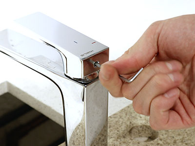 4.水栓ハンドルのネジを六角レンチでゆるめる