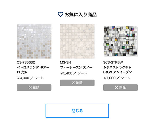 お気に入りに入れた商品が表示されます。商品画像をクリックするとその商品ページへ移動することができます。
