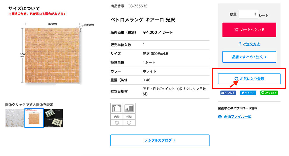 各商品ページにお気に入り登録するボタンがあります。気になる商品を一時的に保存することができるようになります。