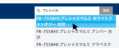 アドヴァンのホームページの検索はオートコンプリート機能になっており、2文字以上入力すると冒頭の文字が一致するものを候補として一覧で表示します。候補を選択するとその商品のページへ移動します。