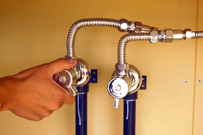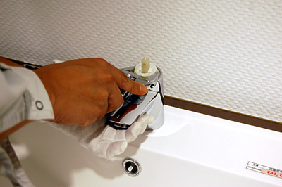湯・水の止水栓を閉め、蛇口から水が出ないようにしてください。