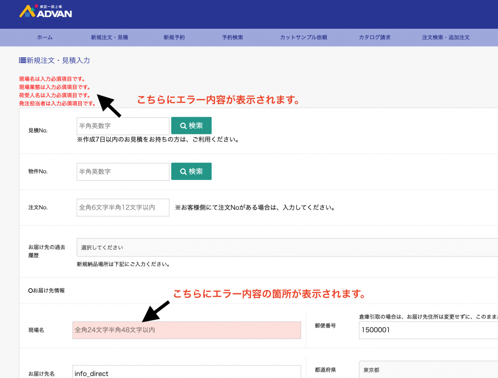 お届け先名などが未入力や文字数オーバーになっている可能性がございます。 画面の左上に赤い文字で原因が表示されておりますのでご確認下さい。