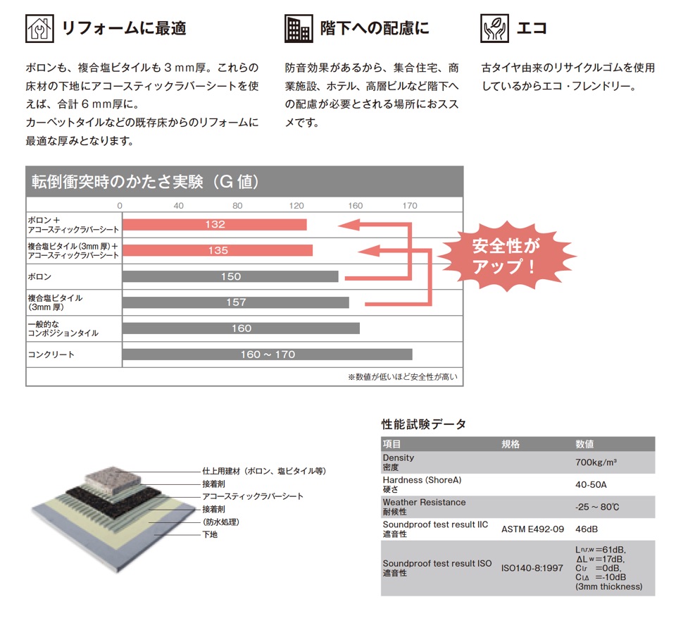 アコースティッスラバーシートの性能については下記リンクをご参照ください。動画もご確認ください。