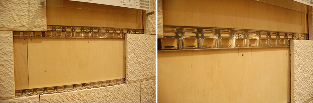 補強バンド:最上部でアミを留めます。一番上の仕上材はこの補強亀甲アミにからみます。