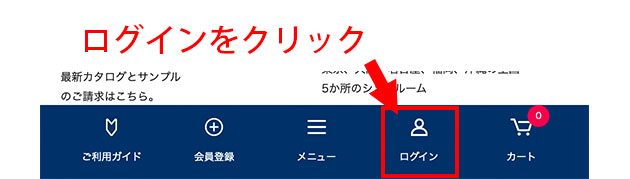 ウェブサイト下部に「ログイン」がございます。こちらをタップしてログインページを表示して下さい。