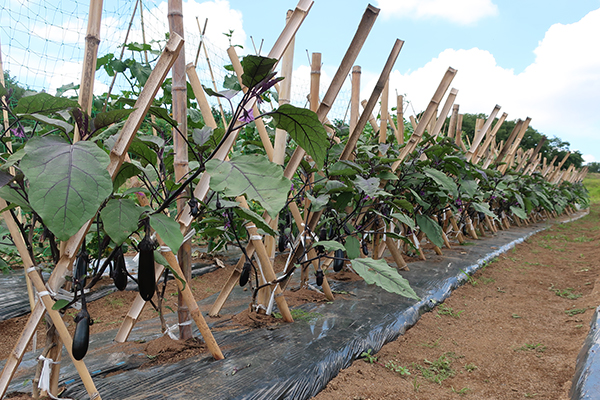 ゴミの不法放棄の温床となっていた近隣の耕作放棄地を取得し、農地化。社員自らの手で野菜や果樹を植えて収穫することで、自然環境保全の大切さを学び、次の世代に豊かな未来を創る活動をしています。現在の農地は約1万坪。今後も継続してまいります。