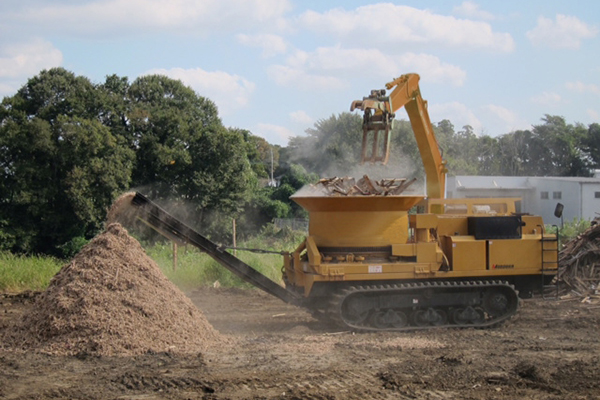 再利用が難しいほどに損傷した木枠パレットは、粉砕しガーデニング用ウッドチップに生まれかわります。ウッドチップは、エリア内の雑草対策や沿道整備に役立てられ、最終的には土に還ります。