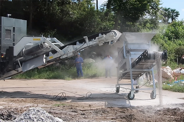 以前は、石材やタイルといった土を由来とする商品で余剰となったものは、産業廃棄物として廃棄していました。2019年春より、これらの商品は細かく粉砕し、エリア内の地盤改良に使用しています。