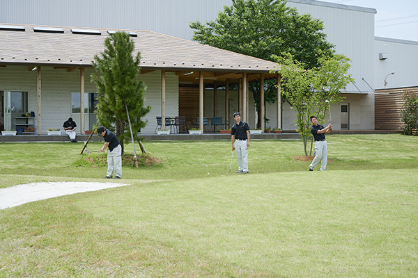 第2食堂の横には、ゴルフの練習場があり、多くの社員が昼食後の休憩時間に、スコアアップを狙い汗を流します。