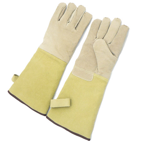 火傷を防ぐ革製ロンググローブ。