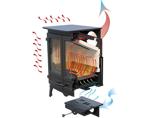 外気を直接本体に導入することにより、安定した状態で薪を燃焼させることができます。