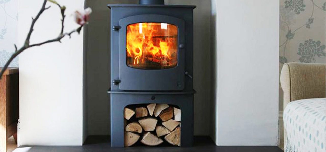 インテリアと調和するブリテッシュデザイン。薪がゆったり入る収納スペースが魅力です。