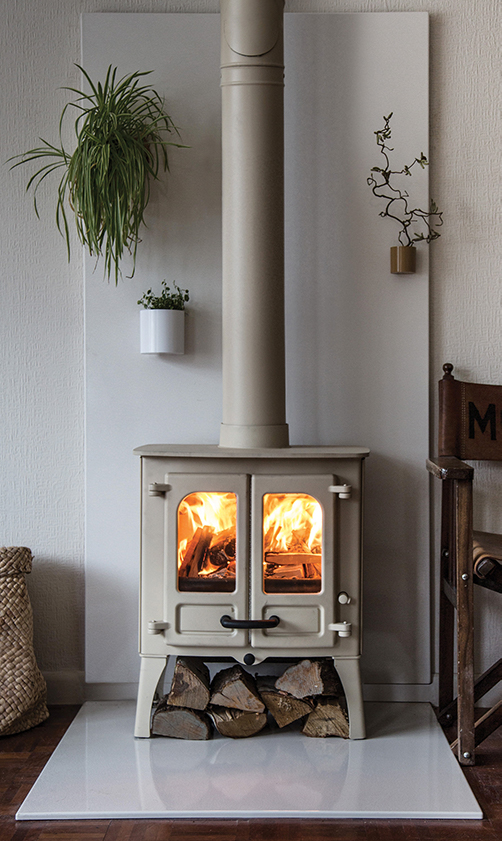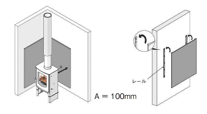 「ブレイズウォール」から100mm離せば、薪ストーブ本体が設置できます。