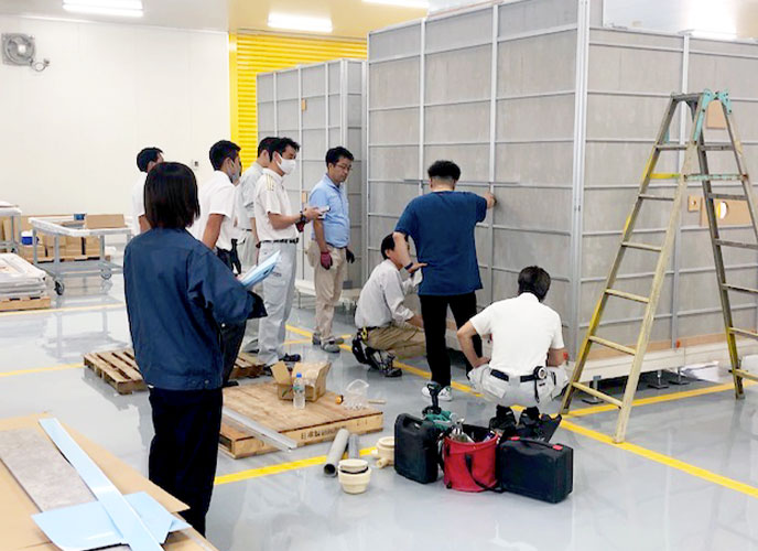 出荷前に工場内で仮組みして出荷前検査をしています。